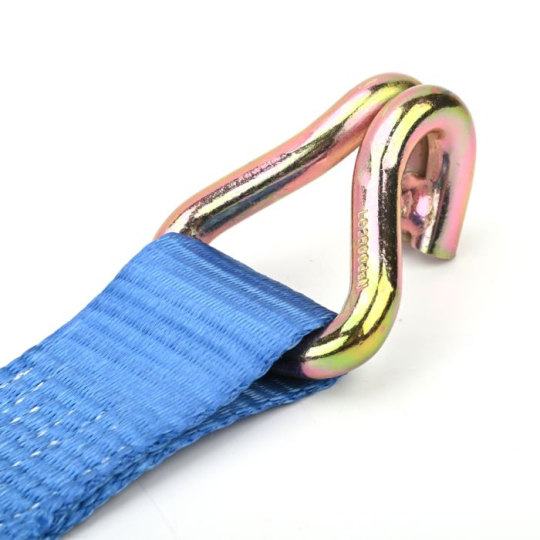 Móc chữ J chắc chắn được gắn vào đầu dây đai có khóa, có thể nhanh chóng khóa vào đúng vị trí. Dây đai polyester bền chắc, chắc chắn và có thể chịu được lực kéo đứt lên đến 2000kg. Xung quanh móc chữ J được khâu đôi để gia cố thêm và tăng khả năng chịu lực.